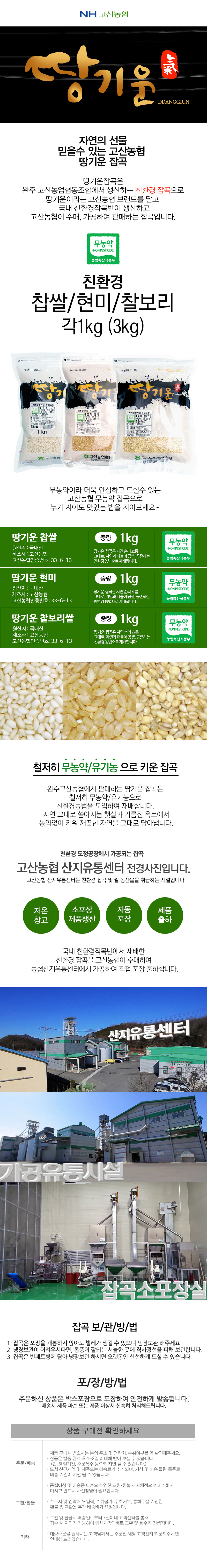 [고산농협] 친환경 땅기운 찹쌀/현미/찰보리쌀 각1kg