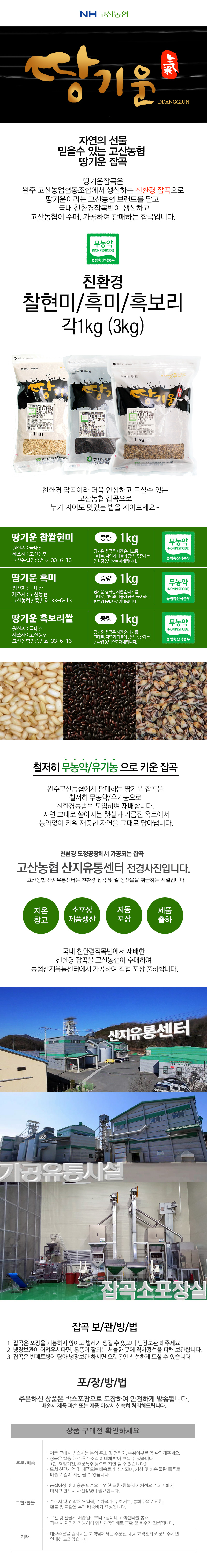 [농협] 고산 친환경 땅기운 찰현미/흑미/흑보리쌀 각1kg