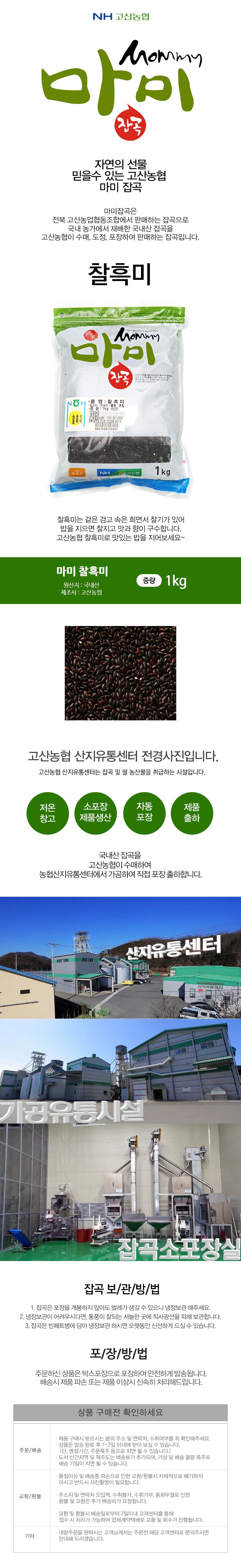 포장단위별 용량(중량),수량,크기 찰흑미1kg/ 크기는 상품별 차이가 있어 정보제공이 어렵습니다