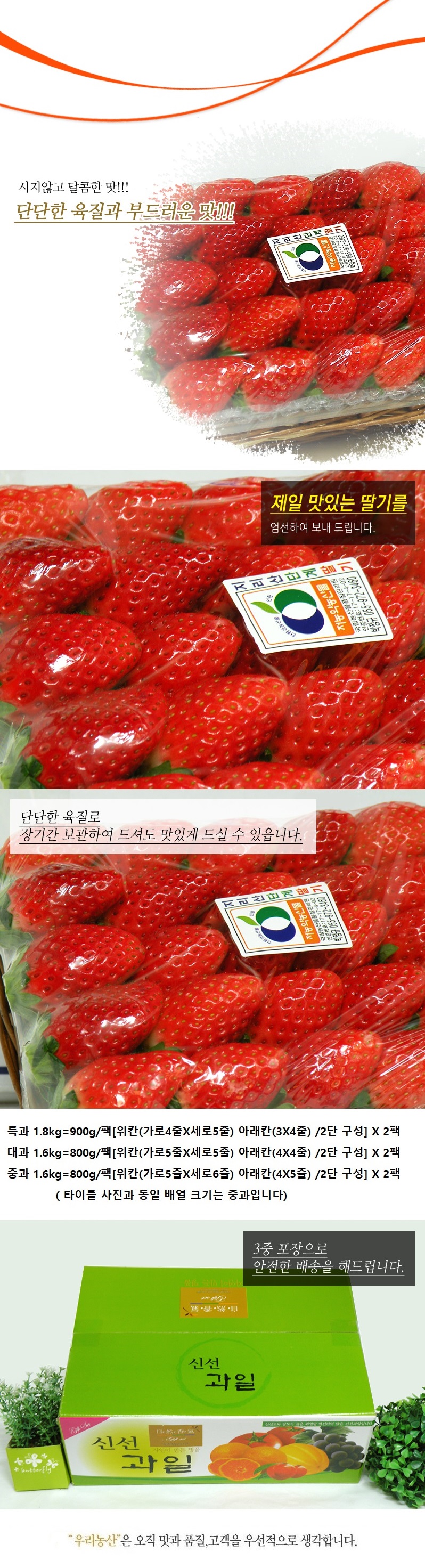 [과일명가] 달콤한 딸기 장희 특과 1.8kg(900g/팩X2팩)