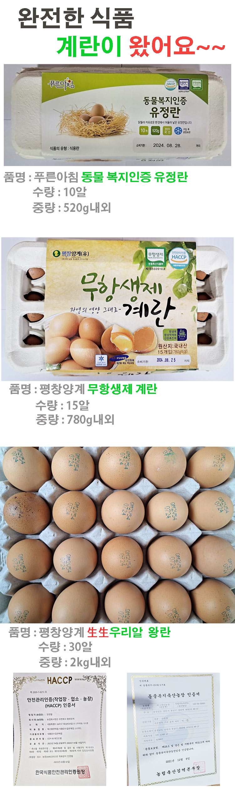 품목 또는 명칭 [평창양계 生生우리알 왕란30알+30알] 완전한식품 계란이 왔어요~