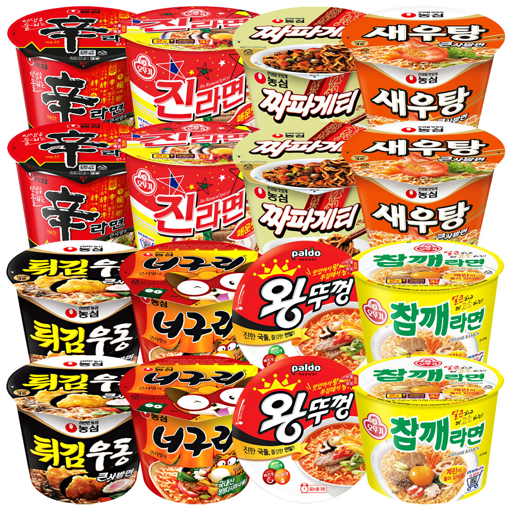 큰컵)신라면2+진라면매운맛2+짜파게티2+새우탕면2+튀김우동2+너구리매운맛2+왕뚜껑2+참깨라면2