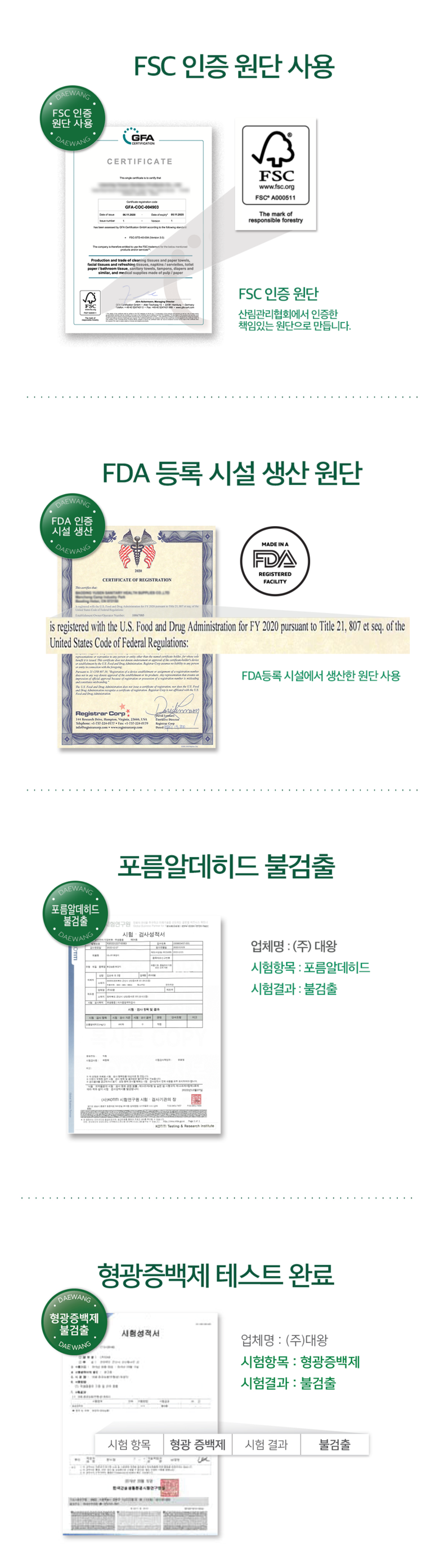 제조사, 수입품의 경우 수입자를 함께 표기 대왕제지